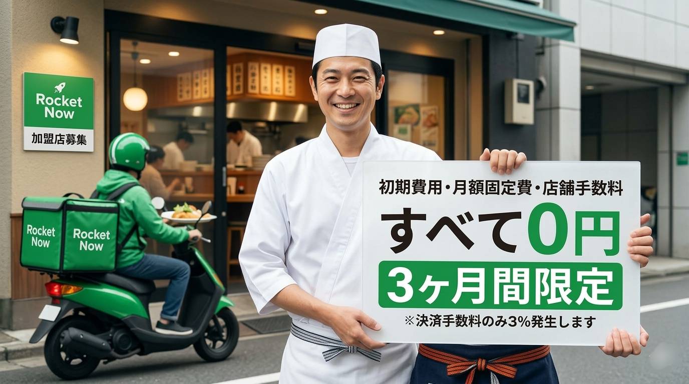 🏪 飲食店様へ:新しいお客様との出会いを! 初期費用を抑えて、売上アップを実現。ロケットナウが強力にサポートします。 3ヶ月間の完全無料お試しで、まずは地域のデリバリー需要を体感してください!