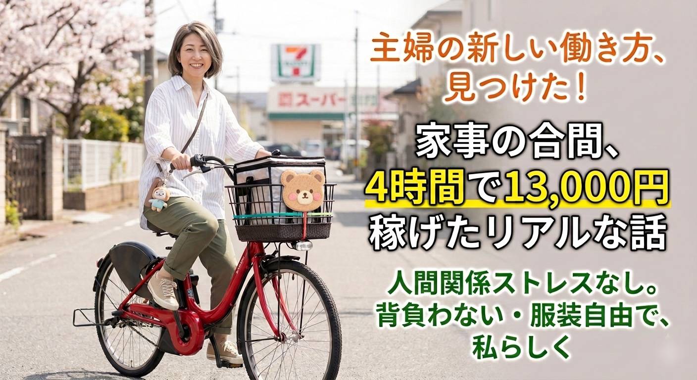 実は、デリバリーは「重労働」でも「危険」でもありません。 現場を知る私が、主婦の皆さんが抱える「不安」を100%消し去る事実と、私が実際にやってみた「夢のような時給」の記録を大公開します!